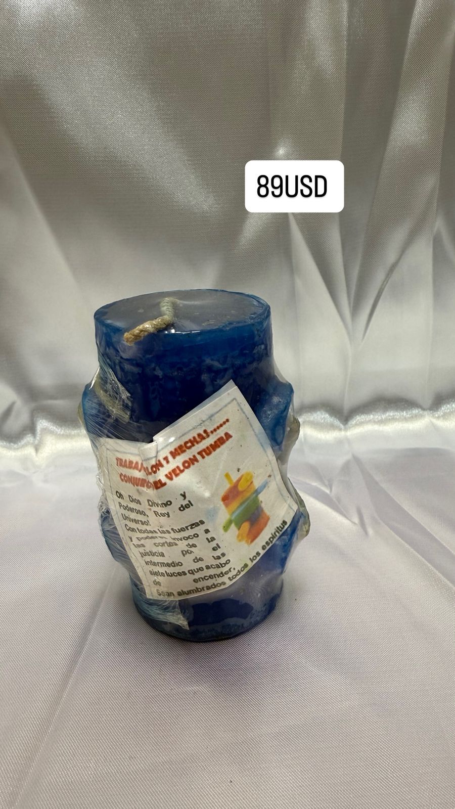 – Azul: El velón azul se emplea para tumbar trabajos que buscan generar conflicto, caos y falta de comunicación. Actúa sobre maldiciones que afectan la armonía en el hogar, la paz mental y la verdad. Se usa para calmar ambientes hostiles, proteger contra chismes y calumnias, y para restaurar la serenidad y el flujo de comunicación honesta.