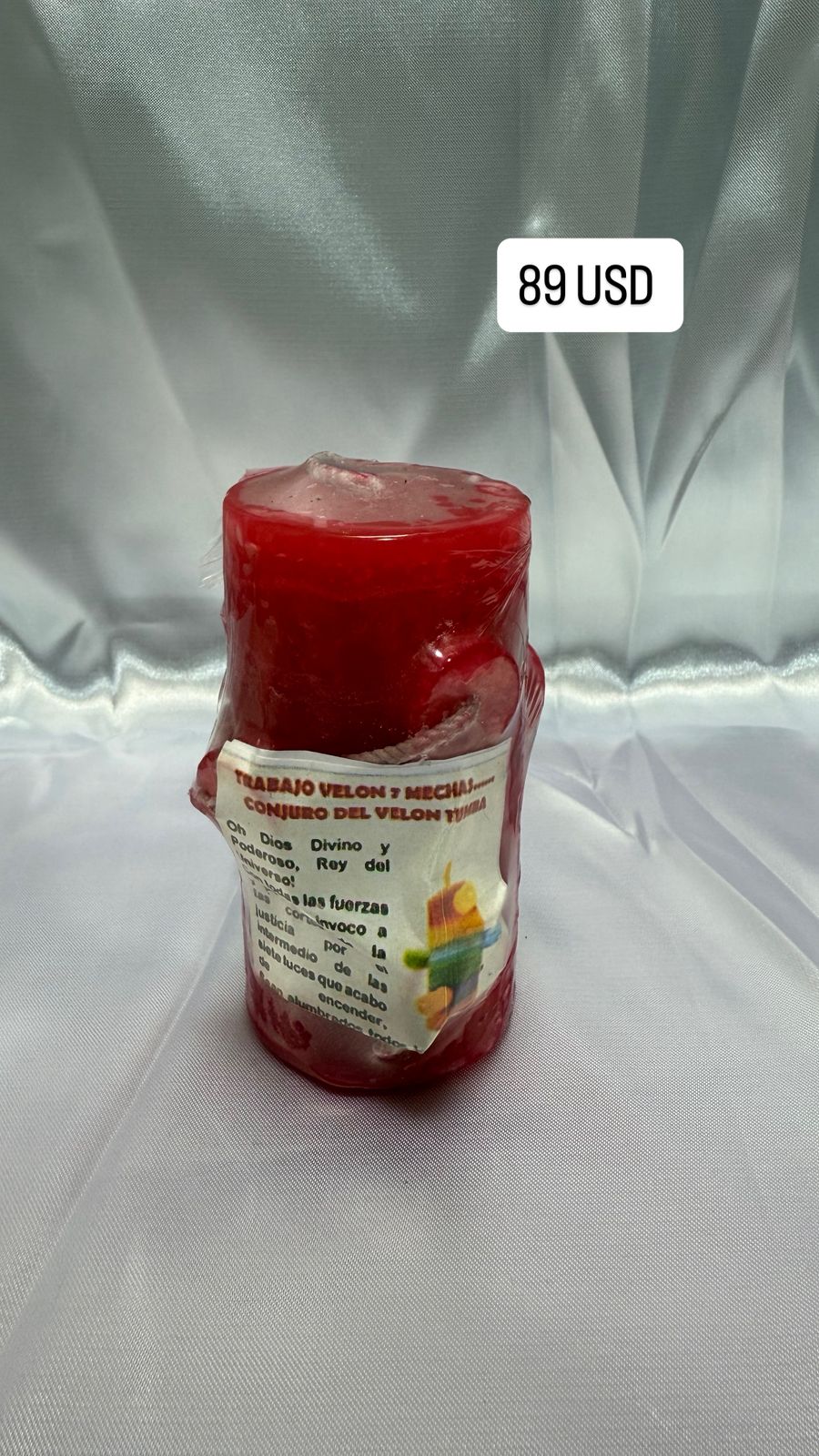– Rojo: Este velón se especializa en romper trabajos relacionados con el amor, la pasión, la sexualidad y la fuerza vital. Se utiliza para anular amarres, hechizos de separación, rituales para causar impotencia o frigidez, y para cortar lazos energéticos que drenan la vitalidad de una persona. Devuelve la fuerza y el dominio sobre el propio corazón y cuerpo.